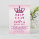 Keep calm, it's a Sweet 16 Birthday Party! Custom girl's birthday invitations with rubies, diamonds, gems and jewels. Pink and purple with a sparkle glitter background. Easy to customize with your own information.