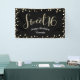 “Happy Sweet 16”. Announce to the world that your daughter has reached their milestone birthday. No one will miss seeing this stunning, simple, festive, modern, personalized banner. Gold glitter script typography and confetti overlay a black background. Personalize the custom text with your daughter’s name. Great for the budding fashionista who loves modern glitter and glam and guaranteed to preserve cherished memories of her special occasion! Matching invites, stickers, plates, napkins and other birthday goodies are also available in this trendy and special collection.