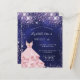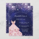 A trendy and glamourous invitation for a Sweet 16, 16th birthday party. A navy blue background with pink faux glitter dust and a dress. The blue colour is uneven. The name is written with a modern hand lettered style script. Personalize and add your party details.