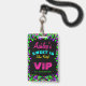 A unique neon glow party sweet 16 birthday VIP pass lanyard invitation.