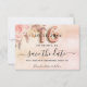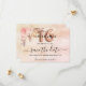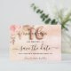 A girly and trendy Save the Date card for a Sweet 16, 16th birthday party. A blush pink, rose gold gradient background decorated with blush pink florals and pampas grass. Personalize and add a date and name/age. The text: Save the Date is written with a large trendy hand lettered style script. Number 16 is written with a balloon style script.