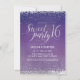 This trendy and pretty 4.5" x 6.25" sweet sixteen (16) birthday invitation features a purple watercolor ombre background dotted with silver (simulated foil) confetti . The words "Sweet 16 Party" are written in an elegant script font in a matching silver foil colour. The back side features a silver dotted pattern atop the same purple watercolor background. The birthday girl's name and other party details can be easily customized for your special event.