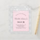 Faux silver metallic and blush pink coloured background decorated with faux silver glitter dust. Personalize and add a name and party details. Black coloured, elegant script.