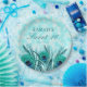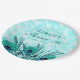 Elegant glittery teal and blue peacock feathers Sweet 16 birthday party paper plates personalized with the name of the guest of honour. Contact me for assistance with your customizations or to request additional matching or coordinating Zazzle products for your party.