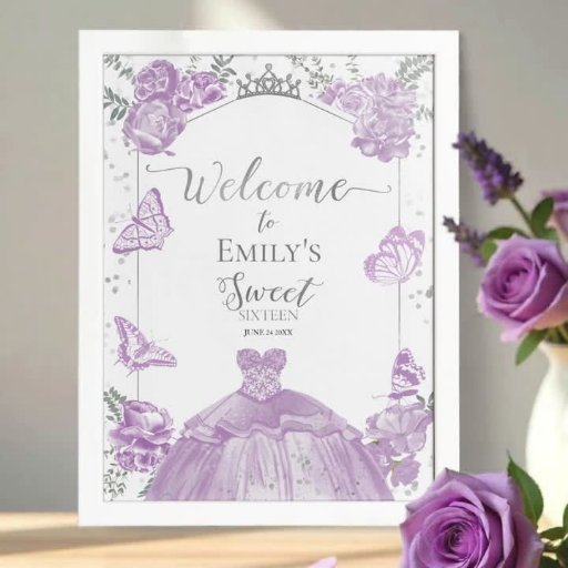 Sweet 16 Photo Welcome Sign Butterfly Lavender