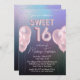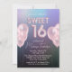 Sweet 16 Pink Balloons on Dark Holographic Invitation