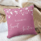 A pillow for a Sweet 16, 16th years old girls room. A dark pink background with stars. Personalize and add a name. Sweet Sixteen is written with a large modern hand lettered style script.