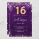 Celebrate a special Sweet 16 with this stunning invitation, perfect for an elegant party. The deep purple background features a beautiful uneven texture, accented by rose gold and golden touch of sparkle. The name is written in a delicate, hand-lettered script, adding a personalized and sophisticated touch. Customize the invitation by adding the birthday girl’s name and all the important party details. This luxurious design sets the tone for an unforgettable celebration.