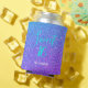 Surprise your guests with a Sweet 16 Purple Teal Glitter Party Favour Can Cooler. The modern glam design has a background with teal and purple ombre faux glitter. The text is "sweet 16" in bright teal trendy handwritten lettering script. Personalized with name in white minimal letters. Design is on both sides. CLICK PERSONALIZE TEMPLATE OPTION AND ENTER NAME.