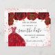 A girly and trendy Save the Date for a Sweet 16, 16th birthday party. A white background decorated red roses, red faux glitter sparkles and a red dress. Personalize and add a date and name/age. The text: Save the Date is written with a large trendy hand lettered style script.