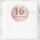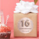 Elegant, classic, glamourous and girly for a Sweet 16, 16th birthday party. Rose gold and blush pink, gradient background. Decorated with pink sparkling diamonds. Personalize and add a name. With the text: Happy Birthday plus the birthday girls name. The name is written with a modern dark rose coloured hand lettered style script. Number 16 is written with a balloon style font.