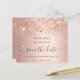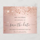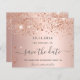 A girly and trendy Save the Date card for a Sweet 16, 16th birthday party. A feminine pink, rose gold faux metallic looking background decorated with faux rose gold glitter dust. Personalize and add a date and name/age. Dark rose gold coloured letters. The text: Save the Date is written with a large trendy hand lettered style script.