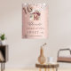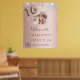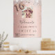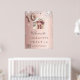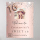 A welcome poster for a girly and glamourous Sweet 16, 16th birthday party. A rose gold faux metallic looking background decorated with faux silver glitter dust. Personalize and add a photo, name and Instagram #hashtag. Number 16 is written with a balloon style font.