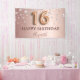 Elegant, classic, glamourous and girly for a Sweet 16, 16th birthday party. Rose gold and blush pink, gradient background. Decorated with rose gold faux diamonds. Personalize and add a name. With the text: Happy Birthday. The name is written with a modern dark rose coloured hand lettered style script. Number 16 is written with a balloon style font.