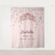 For a Sweet 16, 16th birthday. Rose gold, pink background decorated with faux diamonds and a rose gold coloured tiara, crown. Personalize and add a name and text, date. The name is written in dark rose gold with a modern hand lettered style script. Can be used as a welcome banner, party wall decor or as a photo booth backdrop.