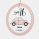 Sweet 16 Rose Pink Photo Name Ceramic Ornament. Make your daughter's or the special girl in your life Sweet 16 party special with this cute girly photo ornament. This sicker features a handwritten signature script font and watercolor hand-painted vintage pink car with a rose pink border. The name, colour of the fonts, and typeface can be customized by clicking on personalize. Custom orders are available at truullc@gmail.com.