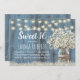 Rustic Baby's Breath Floral Jar Dusty Blue Barn Wood & String Lights Sweet 16 Invitations.
