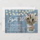 Sweet 16 Rustic Winter Floral Jar Dusty Blue Barn Wood Birthday Invitations.