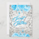 Sweet 16 | Silver Blue Floral Glitter | Birthday Invitation