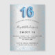 Sweet 16 silver blue glitter invitation magnet