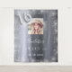 A welcome tapestry for a girly and glamourous Sweet 16, 16th birthday party. A faux silver metallic looking background decorated with faux glitter dust. Personalize and add a high quality photo, name and date. Number 16 is written with a balloon style font.