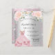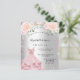 A modern, stylish and glamourous invitation for a Sweet 16, 16th birthday party. A faux silver metallic looking background with pink faux glitter, sparkles, a dress and blush pink florals. The name is written with a modern hand lettered style script. Personalize and add your party details.