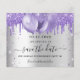 A faux silver looking background decorated with violet, lavender coloured faux glitter and balloons. Personalize and add a date and name/age. The text: Save the Date is written with a large trendy hand lettered style script.