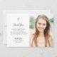 This simple and stylish, black and white religious Confirmation thank you card features whimsical, vintage style script typography and a faux gold cross with your photo. An elegant, classic minimalist look that is still unique and contemporary and also gender neutral, for a boy or a girl.