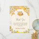 Cette adorable carte de remerciements de baby shower présente "Merci" et votre texte personnalisé avec abeilles nappant sur un nuage entouré de nids de miel et de fleurs sur un arrière - plan jaune doux. L'arrière comprend des peignes de miel, des fleurs d'aquarelle, des jarres de miel et des abeilles volantes. Facile à customiser en cliquant sur "Personnaliser".