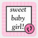 This sticker or label reads "Sweet Baby Girl!" with tiny baby footprints. Perfect for baby shower gift bags, envelope seals or scrapbooking. Apply sticker to candles,candy bars or homemade food. Personalize the text-Click customize it-TIP: KEEP TEXT INSIDE RED DOTTED LINES! Available in other colours!