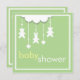 Sweet teddies, hearts, and a bunny dangle from a puffy white cloud on this cute, contemporary baby shower invitation. Also available in blue and pink: