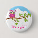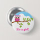 This adorable button with cute little baby girl owl on a branch tree is the perfect finishing touch for your sweet baby owl baby shower invitation . Personalize with your own special text, and use it for the party or event of your choice. Matching items including postage stamps, invitation, thank you cards, thank you stickers and more are also available in our shop. Some Graphics by AMBillustrations at www.etsy.com/shop