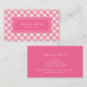 Business card featuring a baby pink gingham pattern with a pink centre on the front. Card has a matching pink back side. This trendy business card is ideal for various professions like interior designer, chef, baker, blogger, babysitter, etc.