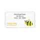 Smiling bright yellow bumble bee with black stripes and fluttering wings buzzing by for the Baby Shower. Name and address in black. A sweet baby is on the way typography in orange yellow. Original Artwork by TamiraZDesigns.