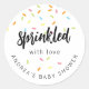 Cute and colourful sprinkle baby shower invitation design that's perfect for a cupcake or ice cream themed occasion.