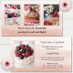 Business card featuring imagery of sweet cakes and desserts framed by a pink watercolor design. You can replace all photos with your own. Beautiful for a sweet bakery or dessert catering company.