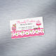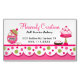 Whimsical bakery business magnet done in pink, white, and green, with a polka dot scalloped edge and graphics of cookies and cupcakes. Personalize the pink and black text for your bakery business. Matching business cards are available.