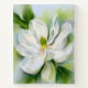 Ce carnet personnalisé est agrémenté d'oeuvres d'art florales dans des tons pastel doux représentant une fleur de magnolia blanche avec monogramme et texte de nom.