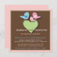 A cute little bird family perched on a heart invites your guest to a couples baby shower