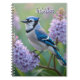 A personalized birds and flowers themed notebook. A Blue Jay sitting in lilac bushes. Add your name in the personalize area!