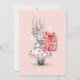 An adorable illustrated bunny in a floral dress offers a cherry-patterned gift on a pastel pink backdrop, symbolizing love, gifting, and cheerful celebration. Perfect for Valentine, spring, and greeting cards.