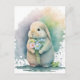 Natural illustrations of sweet & lovely bunny with wildflowers on a gold and powder blue background.