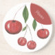 Sweet Cherries Watercolor Illustration Monogrammed Coaster