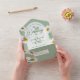 The simple country daisies exude a sense of natural beauty and innocence, symbolizing the purity and joy of your love. Against the calming sage green backdrop, they create a picturesque scene that captures the essence of a serene countryside wedding. The All-in-One wedding invitations are both beautiful and practical by combining the wedding invitation with an easy to remove perforated RSVP postcard. They are also quick and easy to prepare for mailing. Simply address the invitation, fold the back flap and seal with the included clear stickers. Once your guests receive the pre-addressed invitation they simply tear off the perforated RSVP card and drop it in the mail.