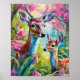 A modern abstract painting of a mother deer and her baby in a serene spring forest, depicted with bright pastel colours and expressive brushstrokes. The soft pinks, greens, and blues create a dreamy, nature-inspired scene that captures the warmth and tenderness of the deer. This contemporary artwork blends wildlife and abstract elements, making it a beautiful and heartfelt addition to any space.