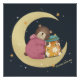 A cute illustration of a sleeping bear in PJ with a jar of honey on the moon