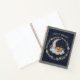 Drift into a world of imagination with the "Sweet Dreams" journal. This cover features a heartwarming faux-embroidery illustration of a peaceful fox curled up asleep on a crescent moon nestled atop swirling white clouds. Surrounded by a delicate circular wreath of muted floral blossoms and shimmering stars, the design is set against a deep navy linen-textured background. The realistic needlepoint aesthetic makes this a truly unique and comforting piece of stationery.