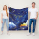 This blanket can be personalized as you wish. The colours are various shades of blue, white-grey, and a golden touch with simulated stardust, clouds, and stars.