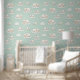 Create the ultimate cozy haven with this enchanting 'Sweet Dreams' wallpaper. This gentle pattern features soft watercolor illustrations of adorable sleeping lambs and bunny rabbits nestled on fluffy white clouds. Little birds perch on branches, while delicate stars twinkle against a soothing, pastel mint green background. Perfect for a baby's nursery, child's bedroom, or a quiet reading nook, this tranquil design promotes a sense of calm and restfulness. It's a timeless, gender-neutral choice that adds a gentle, dreamy touch to any space. Search ID1229 to see other products with this enchanting design. Note: design adapted from generative content.