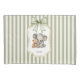 This adorable pillowcase features a heartwarming watercolor illustration of a sweet elephant gently hugging a cuddly teddy bear. Designed with a soft sage green and white stripe background, it's framed by an elegant, vintage-inspired border topped with a delicate bow. The name "Sofia" is elegantly displayed, making it a perfect personalized touch for any little girl's nursery or bedroom. Crafted with care, this charming pillowcase adds a touch of whimsical innocence and comfort to your child's sleeping space, creating a serene and inviting atmosphere for sweet dreams.